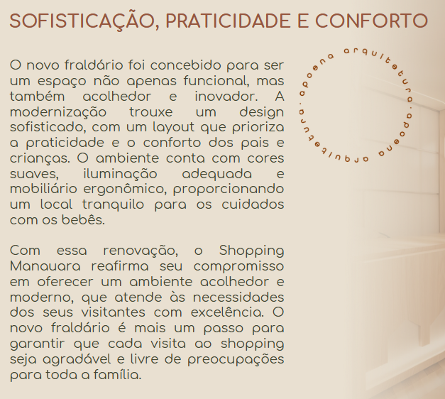 Com essa renovação, o Shopping Manauara reafirma seu compromisso em oferecer um ambiente acolhedor e moderno, que atende às necessidades dos seus visitantes com excelência. O novo fraldário é mais um passo para garantir que cada visita ao shopping seja agradável e livre de preocupações para toda a família.